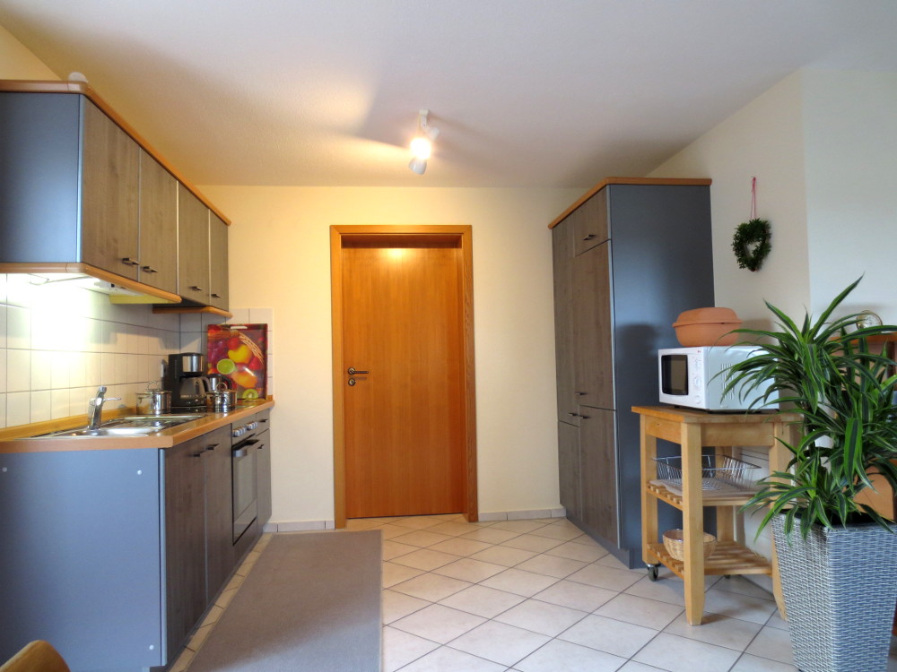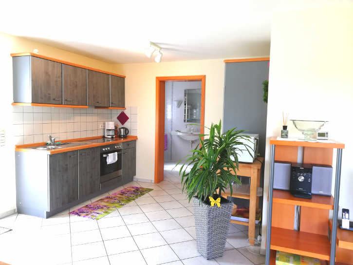 Cerankochfeld + Backofen, Kühlschrank, Edelstahltöpfe, Pfannen, Auflaufform, Thermoskanne, kl. Espressokocher, weißes Geschirr, schöne Gläser, Glasschüsseln,